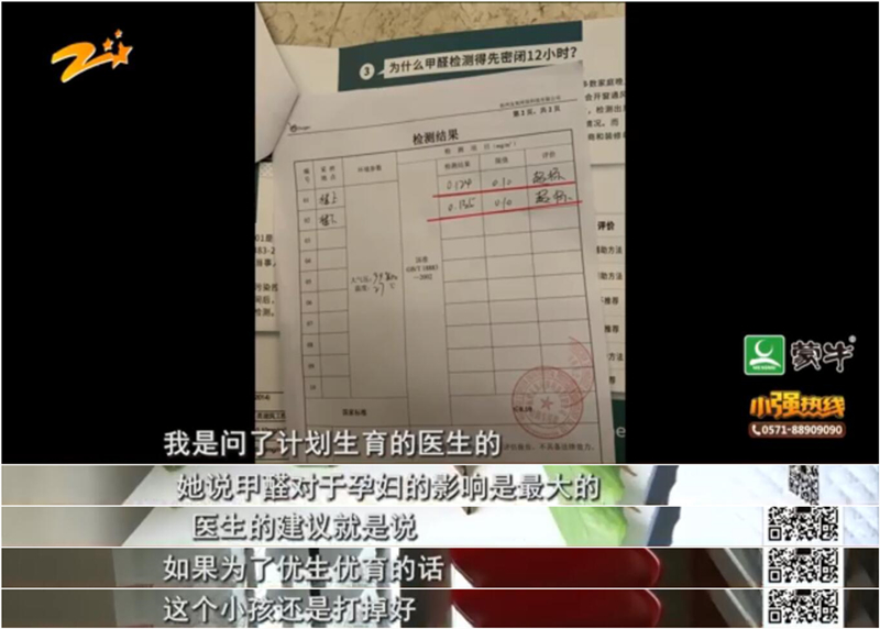 近日,浙江電視臺教育科技頻道《小強熱線》欄目的一個報道引起社會廣泛關注,懷孕入住甲醛房,孩子沒了:徐女士在懷孕期間入住出租房,出現了“流了四天鼻血”、“懷孕出血”等狀況,徐女士說關閉門窗僅三四個小時,檢測超標30%。為了優生優育,醫生建議徐女士把小孩打掉。
