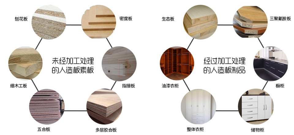 人造板素板主要包括:膠合板、細(xì)木工板、密度板、指接板、刨花板。