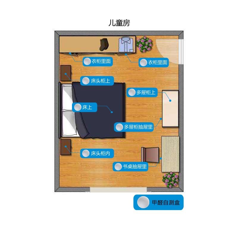 (2)兒童房寫字桌上要測(cè),更不要忘記寫字桌抽屜、小柜的檢測(cè)。